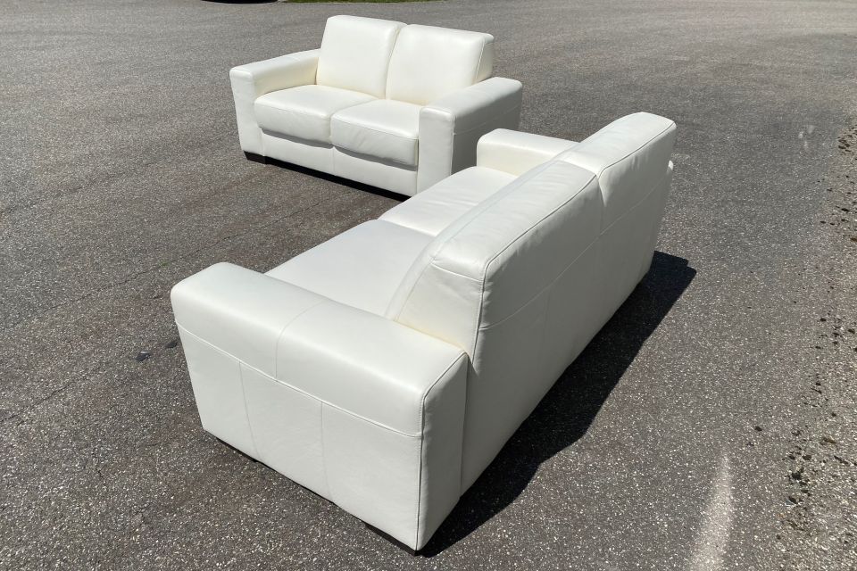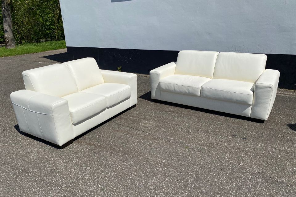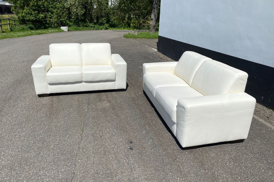 De bank is uitgevoerd in leder Toledo Bianco.