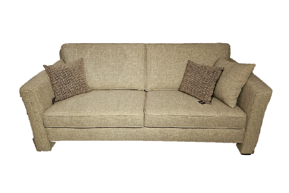 De bank is bekleed met stof Creta in de kleur Toffee 1047 en staat op zwarte poten. Dankzij de interieurvering zit de bank extra stevig en comfortabel. De zittingen kunnen handmatig uitgeschoven worden voor een diepere zitting.