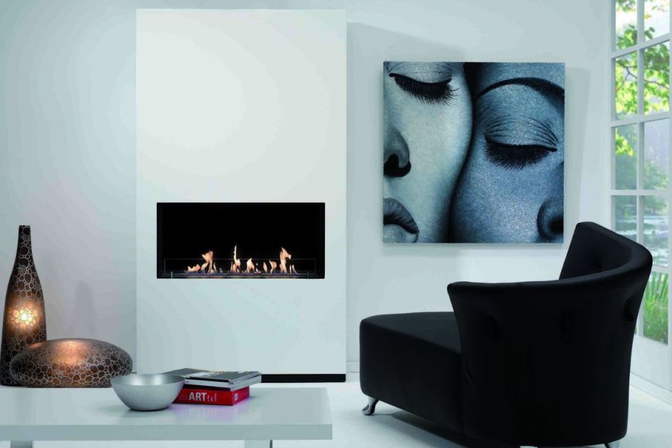De Ruby Fires schouw Ambiance is een moderne schouw met een zeer strakke vormgeving. Het ontwerp van dit model is gebaseerd op een grote schouw met rookkanaal. De ruimte waar de haard wordt geplaatst is aan de achterzijde voorzien van een donker glaspaneel, dit glaspaneel geeft extra diepte aan het vuurbeeld. De Ambiance is ook leverbaar als 'vrijstaand' model.