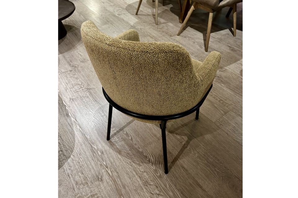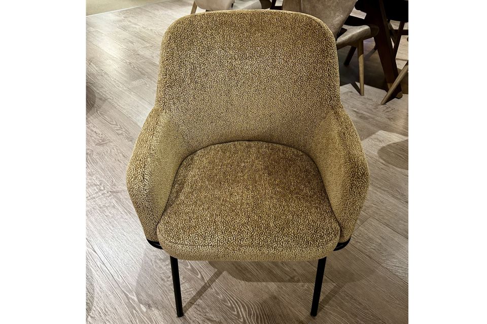 Het gaat om 1 eetkamersoel in stof Rafael, in de kleur 10 en staat op een zwarte poten.