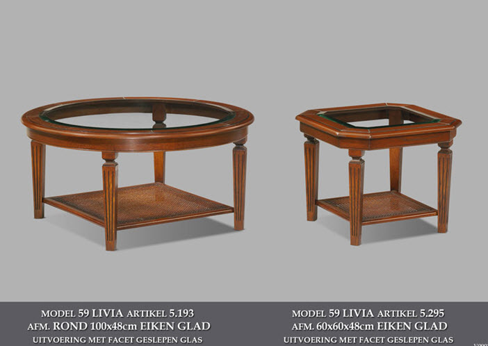Salontafel Livia is leverbaar met een houten bovenblad en een glasblad. U kunt de salontafel compleet naar eigen smaak en inzicht samenstellen zodat hij perfect in het interieur van uw woning past.